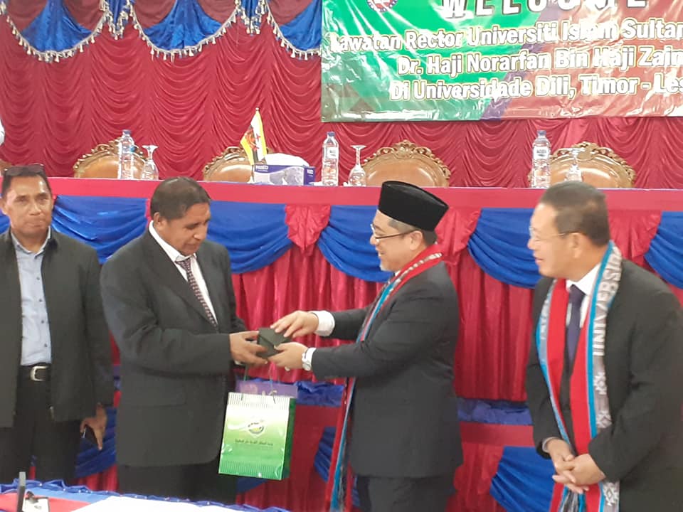 Iha Momento ne Mag. Reitor UNISSA Brunei rasik mak mai hodi Rep. Liurai Brunei nudar nain mos ba Universidade UNISSA. IHA Intervensaun nia appresia tebes ho Hospitalidade mak nia hetan hosi uma nain UNDIL, nia mos Hato Obrigado ba UNDIL Bele konkretiza Aktividade Book Corner ne, nebe importante fo Konese Brunei mai Sosiadade Timor. Buat seluk mak nia hato'o kona ba Oportunidade Bolsa Estudo ba iha Brunei, ne e mak sei responsabiliza husi Embasada Brunei iha Timor leste. Mag Reitor UNDIL Rasik simu ita nia Bainaka sira ho Kontente no Kontinua kedas ho aktividade: Koa fita hodi Inagura Book Corner, no hakat ba vizita fasilidade sira mak UNDIL iha. Reitor mos hato'o komitemento no Prontidau hodi Servisu ba Edukasaun iha Timor no Mundo, Brunei sai nia Amigo Importante atu konkretiza Mehi bot. UNDIL nia koperasaun mak iha estrategiku tebes atu Introduz Timor ba Mundo komesa ho Nasaun Sira mak iha Rejiaun hanesan.