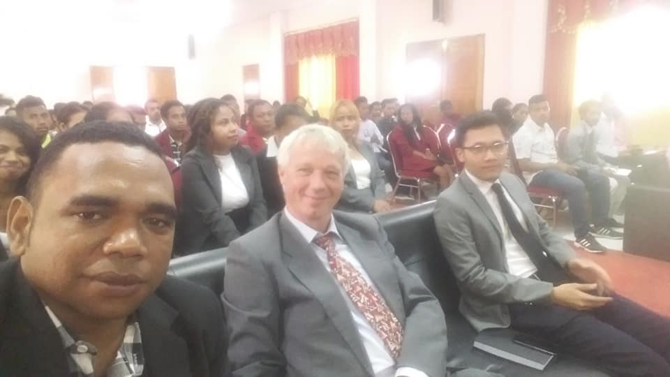 Ohin loron 7 Augustu 18 , Professor. Dr. Roel Van Der Veen, nudar Chefe Assunto Politika Embaixada Holanda iha Indonesia ho delegadus mai Fo'o Kuliah ou Public Lecture ba Estudante UNDIL Relasaun International ho Topiku Relasaun Holanda - Timor leste.
