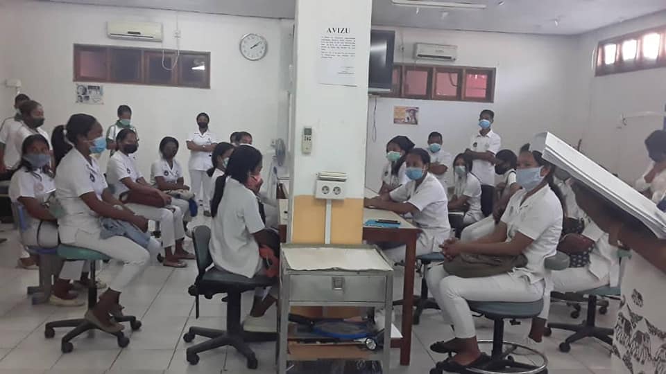 Iha loron 19 Junu 2020, Rep. Minesteriu Ensino Superior, hamutuk ho Equipa husi Minesteriu Saude Mai Vizita Universidade Dili hodi hare besik implementasaun Politika prevensaun hasoru COVID 19 iha Resinto Universidade durante proseso Aparendigazem.